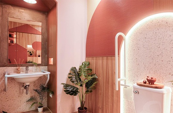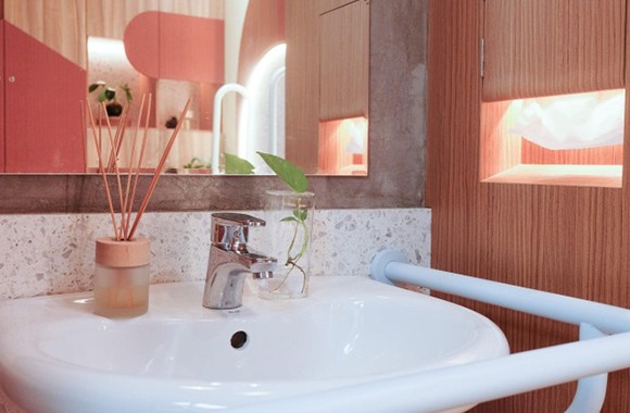 星星碼頭配有無障礙廁所,明亮整潔的環境、色系繽紛的扶手和童趣的木造櫃體、檯面,讓廁所呈現童話城堡一般的夢幻之境。